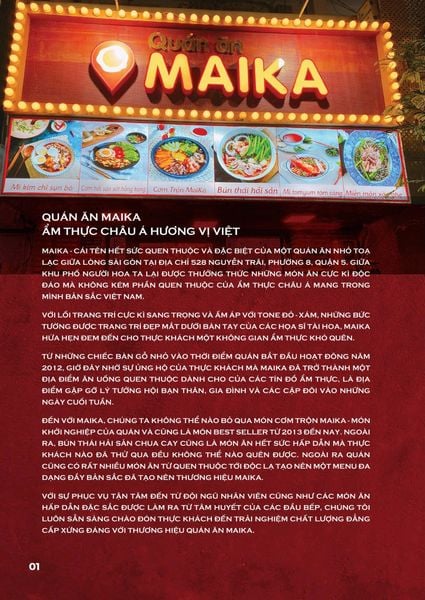 Ẩm thực Châu Á hương vị Việt MaiKa - cái tên hết sức quen thuộc và đặc biệt của một quán ăn nhỏ toạ lạc giữa lòng Sài Gòn tại địa chỉ 528 Nguyễn Trãi, Phường 8, Quận 5. Giữa khu phố người Hoa ta lại được thưởng thức những món ăn cực kì độc đáo mà không kém phần quen thuộc của ẩm thực Châu Á mang trong mình bản sắc Việt Nam.